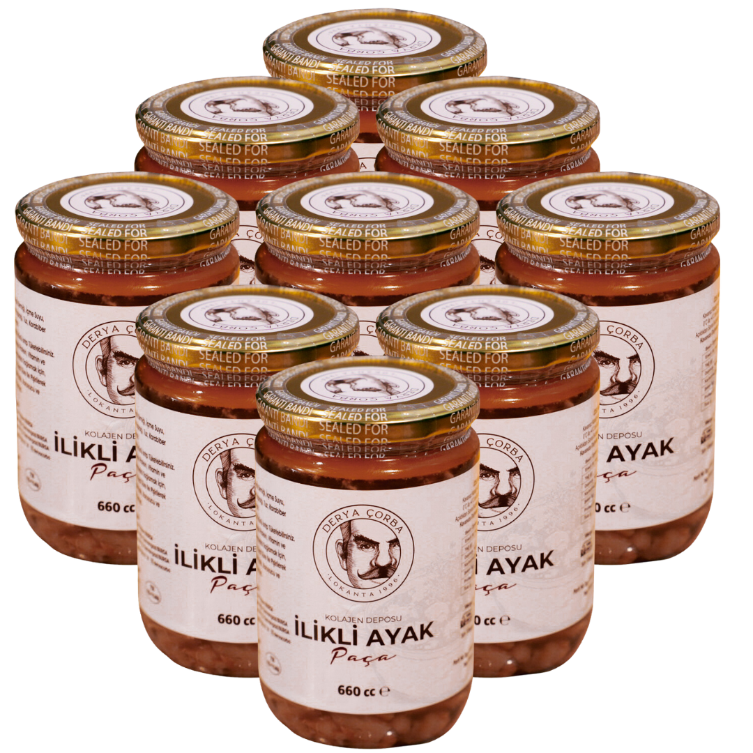 İlikli Ayak Paça Çorbası 2 Porsiyonluk 660 cc, geleneksel Türk mutfağının en güçlü ve besleyici çorbalarından biri olan paça çorbasının hazır ve pratik formudur. Dana ayak ve kemik iliğinden elde edilen zengin kemik suyu ile hazırlanan bu çorba, yoğun aroması ve doğal içeriği ile sofralara geleneksel lezzeti taşır. Uzun süre düşük sıcaklıkta pişirilerek hazırlanan bu özel çorba, kemik iliğinde bulunan protein, kolajen ve minerallerin çorbaya geçmesini sağlayarak besleyici bir yapı sunar. Geleneksel tarifine sadık kalınarak hazırlanan ürün, katkı maddesi, koruyucu ve renklendirici içermez. 660 cc’lik ambalajı sayesinde 2 porsiyonluk pratik kullanım sağlar. Evde, iş yerinde veya restoran mutfağında yalnızca birkaç dakika ısıtılarak kolayca servis edilebilir. Dilerseniz sarımsak, limon ve sirke ile servis ederek geleneksel paça çorbası lezzetini daha da zenginleştirebilirsiniz. Derya Çorba kalitesiyle hijyenik üretim standartlarında hazırlanan İlikli Ayak Paça Çorbası, doğal içeriği ve