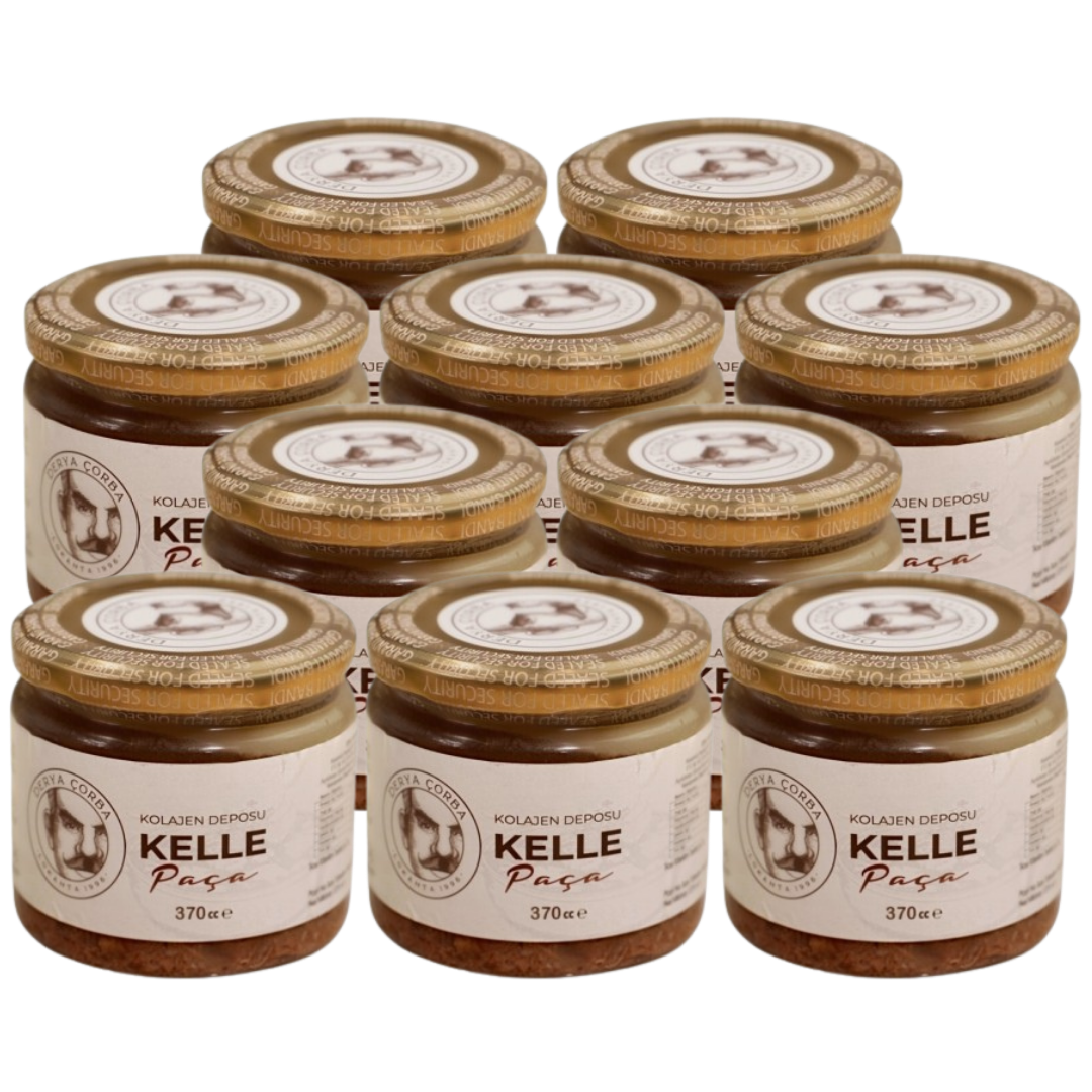Naturel Kelle Paça Çorbası 1 Porsiyonluk 370 cc, Türk mutfağının en köklü ve besleyici çorbalarından biri olan kelle paça çorbasının pratik ve hazır formudur. Dana kelle eti, dil eti ve kemik suyunun zengin aromasıyla hazırlanan bu çorba, geleneksel lezzeti modern üretim standartlarıyla bir araya getirir. Uzun süre düşük sıcaklıkta pişirilerek hazırlanan bu özel çorba, kemik ve etin içeriğinde bulunan doğal protein, kolajen ve minerallerin çorbaya geçmesini sağlar. Böylece hem yoğun lezzetli hem de besleyici bir çorba elde edilir. Ürün herhangi bir katkı maddesi, koruyucu veya renklendirici içermez. 370 cc’lik porsiyonluk ambalajı sayesinde tek kişilik pratik tüketim sağlar. Evde, iş yerinde veya restoran mutfağında yalnızca birkaç dakika ısıtılarak kolayca servis edilebilir. Geleneksel sunum için sarımsak, sirke ve limon ile servis edilmesi önerilir. Derya Çorba kalitesiyle hijyenik koşullarda üretilen Naturel Kelle Paça Çorbası, doğal içeriği ve güçlü besin değerleri ile hem sağlı