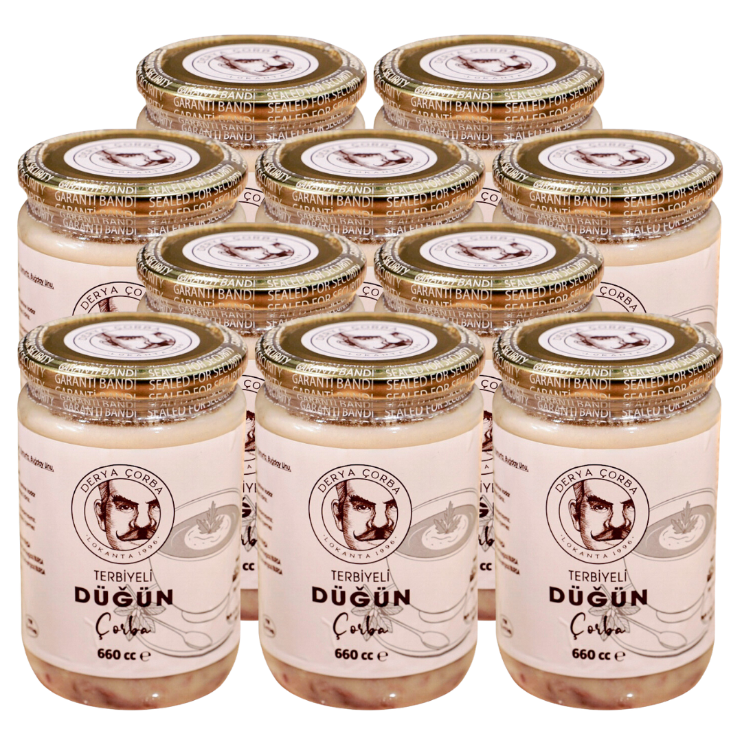 Terbiyeli Düğün Çorbası 2 Porsiyonluk 660 cc, Türk mutfağının en özel ve geleneksel çorbalarından biri olan düğün çorbasının pratik ve hazır formudur. Dana eti, kemik suyu ve yoğurt terbiyesi ile hazırlanan bu çorba, yoğun aroması ve dengeli kıvamı ile sofralara klasik bir Anadolu lezzeti sunar. Yoğurt ve yumurta ile hazırlanan özel terbiyesi sayesinde çorba hem besleyici hem de doyurucu bir yapıya sahiptir. Geleneksel tarifine sadık kalınarak hazırlanan ürün katkı maddesi, koruyucu veya renklendirici içermez. 660 cc’lik ambalajı sayesinde 2 porsiyonluk pratik kullanım sunar. Evde, iş yerinde veya restoran mutfağında yalnızca birkaç dakika ısıtılarak kolayca servis edilebilir. Derya Çorba kalitesiyle hijyenik üretim standartlarında hazırlanan Terbiyeli Düğün Çorbası, geleneksel Türk mutfağının sevilen lezzetlerinden birini hızlı ve pratik bir şekilde sofralarınıza taşır.