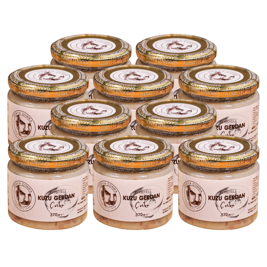 Terbiyeli Kuzu Gerdan Çorbası 1 Porsiyonluk 370 cc, Türk mutfağının geleneksel ve besleyici çorbalarından biri olan kuzu gerdan çorbasının pratik ve hazır formudur. Kuzu gerdan eti, kemik suyu ve yoğurt terbiyesi ile hazırlanan bu çorba, zengin aroması ve yoğun lezzetiyle sofralara sıcak bir başlangıç sunar. Yoğurt ve yumurta ile hazırlanan özel terbiyesi sayesinde çorba dengeli kıvamı ve lezzetli bir yapı kazanır. Geleneksel tarifine sadık kalınarak hazırlanan ürün katkı maddesi, koruyucu veya renklendirici içermez. 370 cc’lik porsiyonluk ambalajı sayesinde tek kişilik pratik tüketim sağlar. Evde, iş yerinde veya restoran mutfağında yalnızca birkaç dakika ısıtılarak kolayca servis edilebilir. İsteğe bağlı olarak sarımsak, sirke veya pul biber ile servis edilerek geleneksel sunum tamamlanabilir. Derya Çorba kalitesiyle hijyenik üretim standartlarında hazırlanan Terbiyeli Kuzu Gerdan Çorbası, geleneksel Türk mutfağının sevilen lezzetlerinden birini pratik şekilde sofralarınıza ulaştı